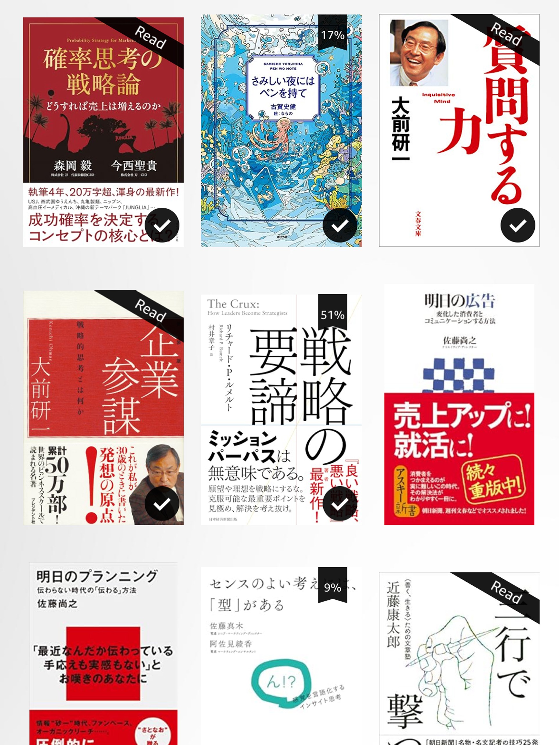 大前研一さんの本が多めです。他は歴史系とかが好きです